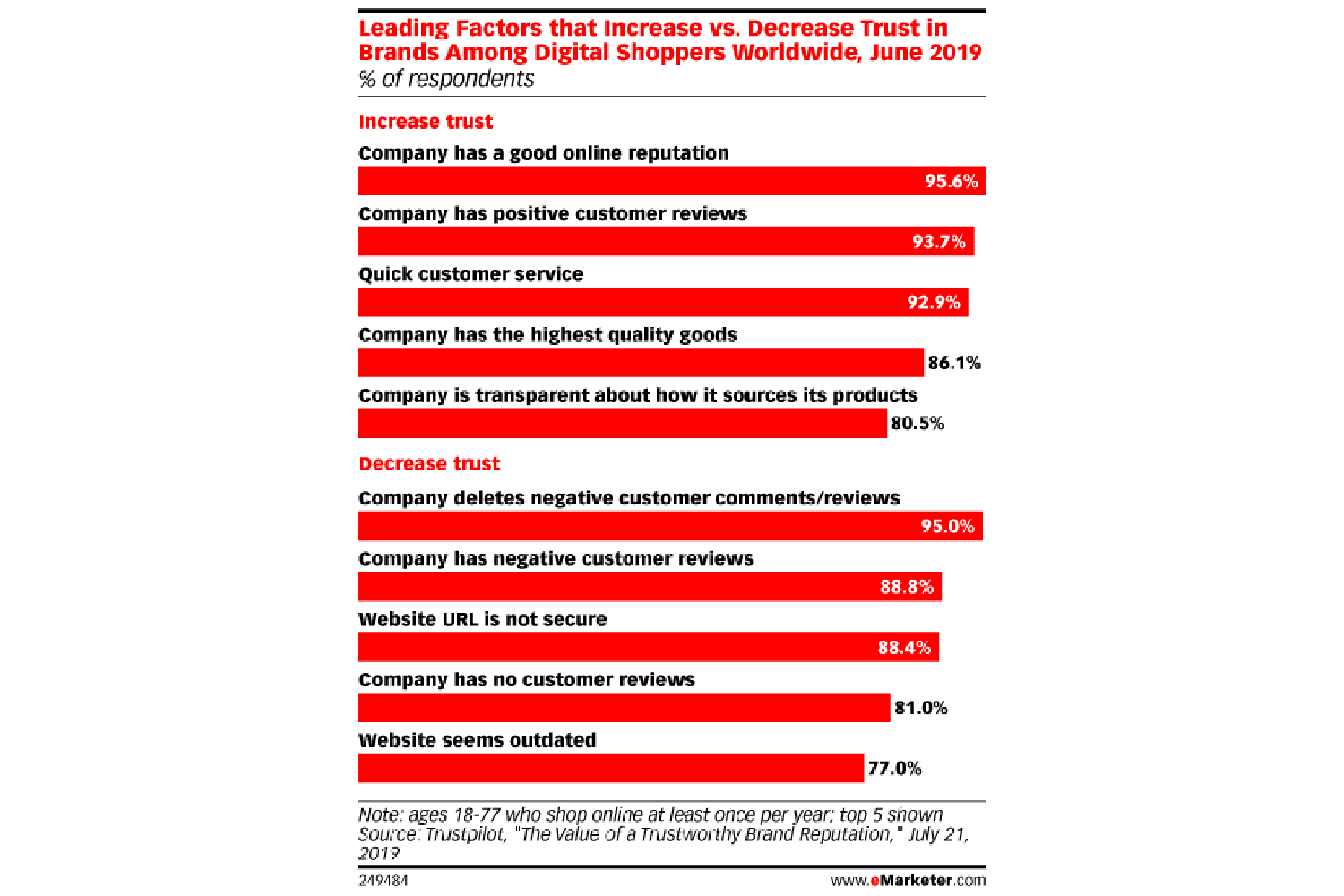 People are also less likely to trust a business with only positive reviews. They’ll think that the company is censoring or posting fake comments. 95% of consumers say they’d lose trust in a company that deleted reviews.
