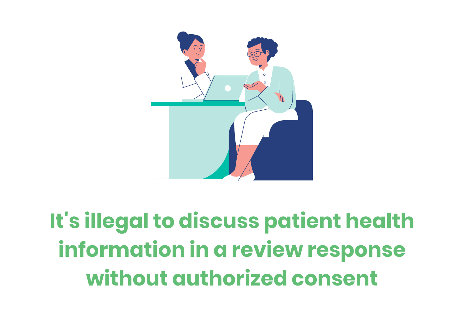 In other cases, a review might contain protected health information that you can’t address within a response. Acknowledging or repeating this PHI online would violate HIPAA if you didn’t first receive authorized consent to discuss it.