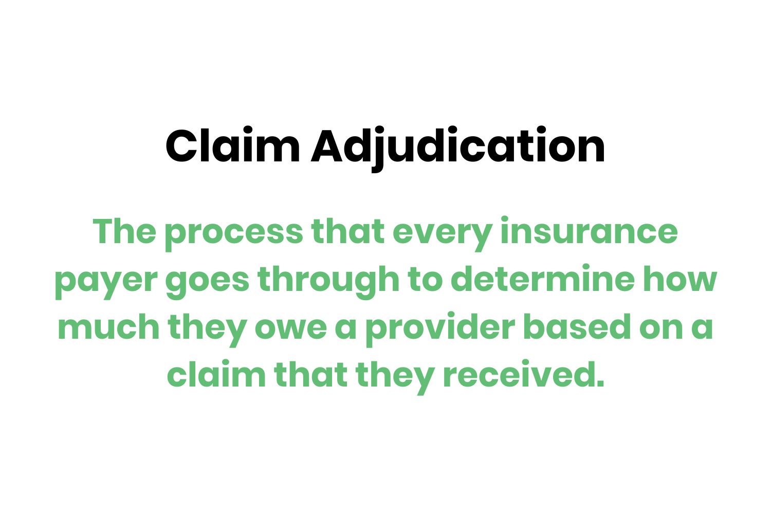 In a nutshell, claim adjudication is the process that every insurance payer goes through to determine how much they owe a provider based on a claim that they received.