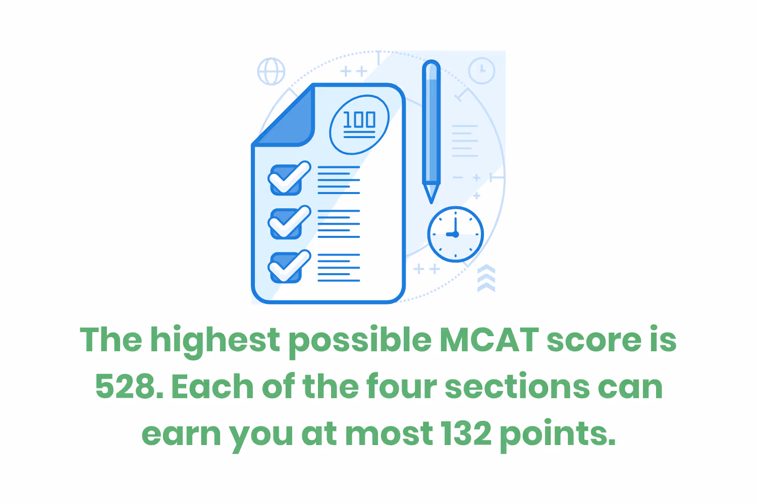 This might not mean much if you have no idea what the MCAT looks like. The highest possible MCAT score is 528. Each of the four sections can earn you at most 132 points.