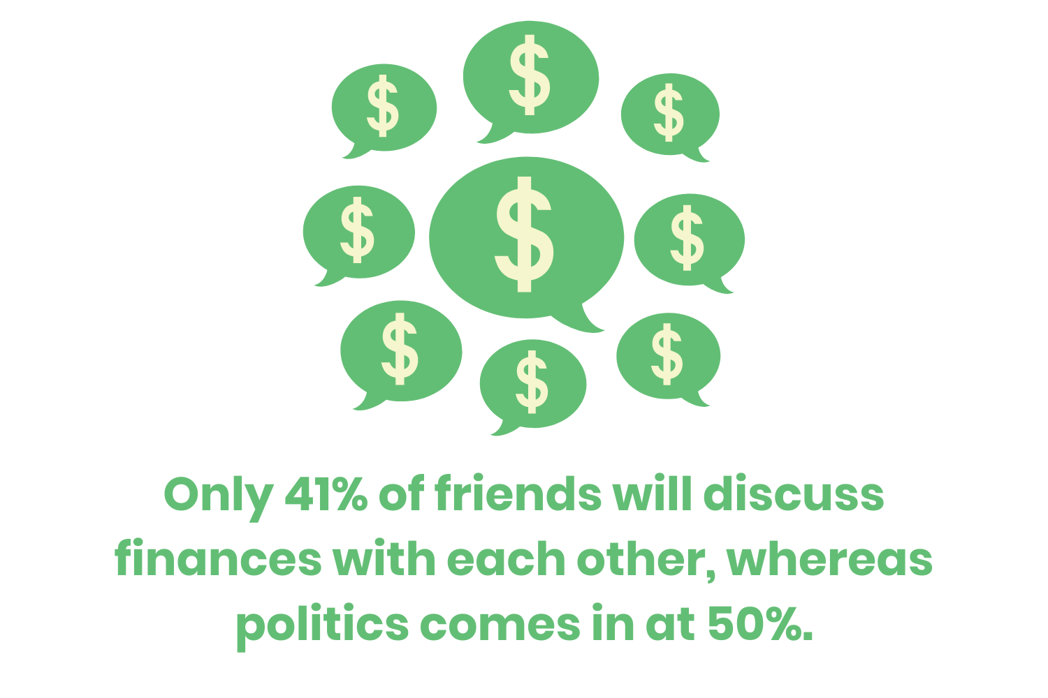 A 2021 Insider study reports that the taboo around money is still very real. According to the findings, only 41% of friends will discuss finances with each other, whereas politics comes in at 50%.