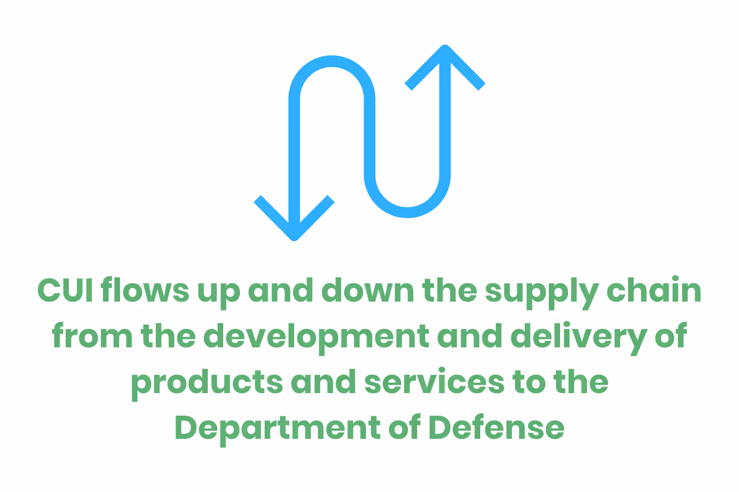 In the defense industrial base, Controlled Unclassified Information (CUI) flows up and down the supply chain. It moves from the development and delivery of products and services to the Department of Defense (DoD).