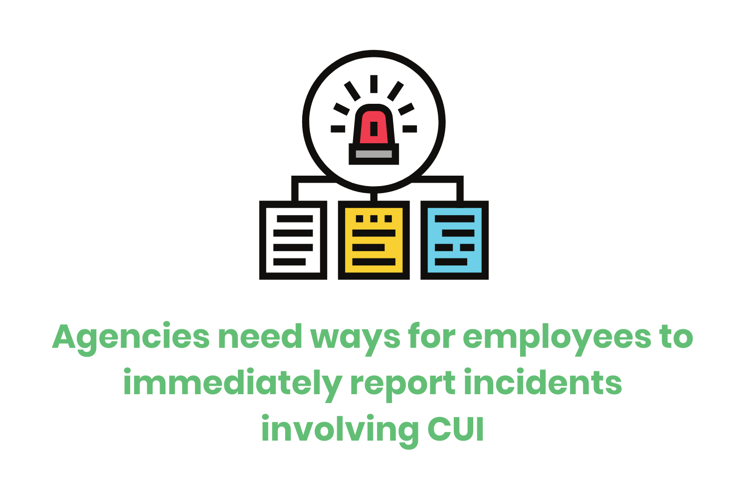 No individual or system is perfect, so unfortunately incidents may occur. If an incident occurs involving CUI, it must get reported immediately.