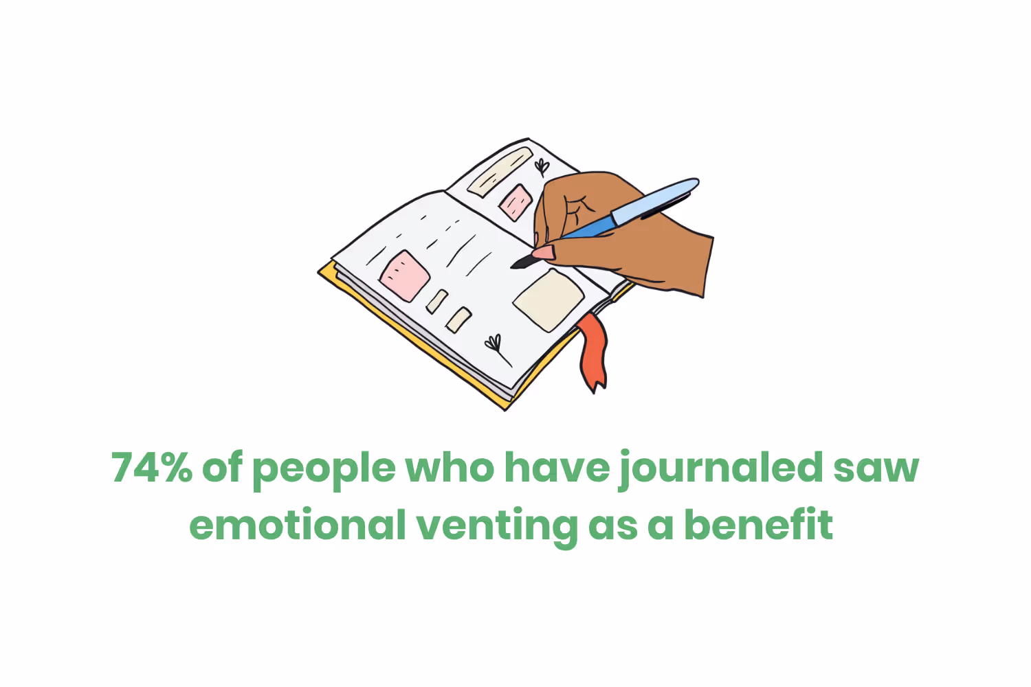 74% of people who have journaled saw emotional venting as a benefit and 65% of those people saw journaling improve their ability to manage stress.