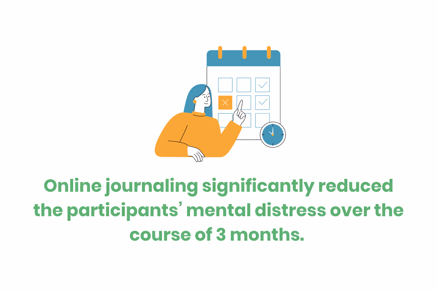 Another study in 2018 assessed 70 adults experiencing elevated anxiety levels. The study concludes that online journaling significantly reduced the participants’ mental distress over the course of 3 months.