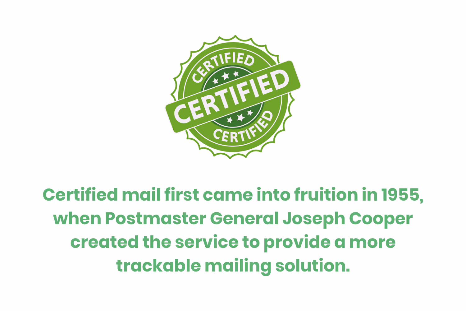 Certified mail first came into fruition in 1955, when Postmaster General Joseph Cooper created the service to provide a more trackable mailing solution. This solution stretched from individuals all the way to businesses of all sizes.