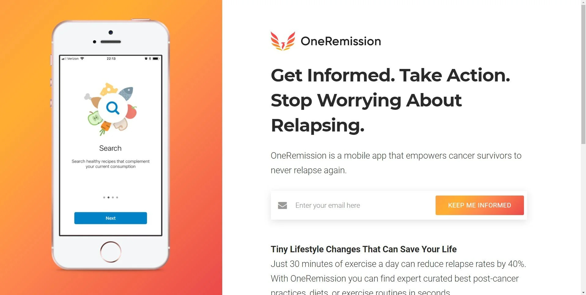 OneRemission is an app created by a cancer survivor for patients going through similar hardships. The chatbot’s ultimate goal is to help ease the fight against cancer.