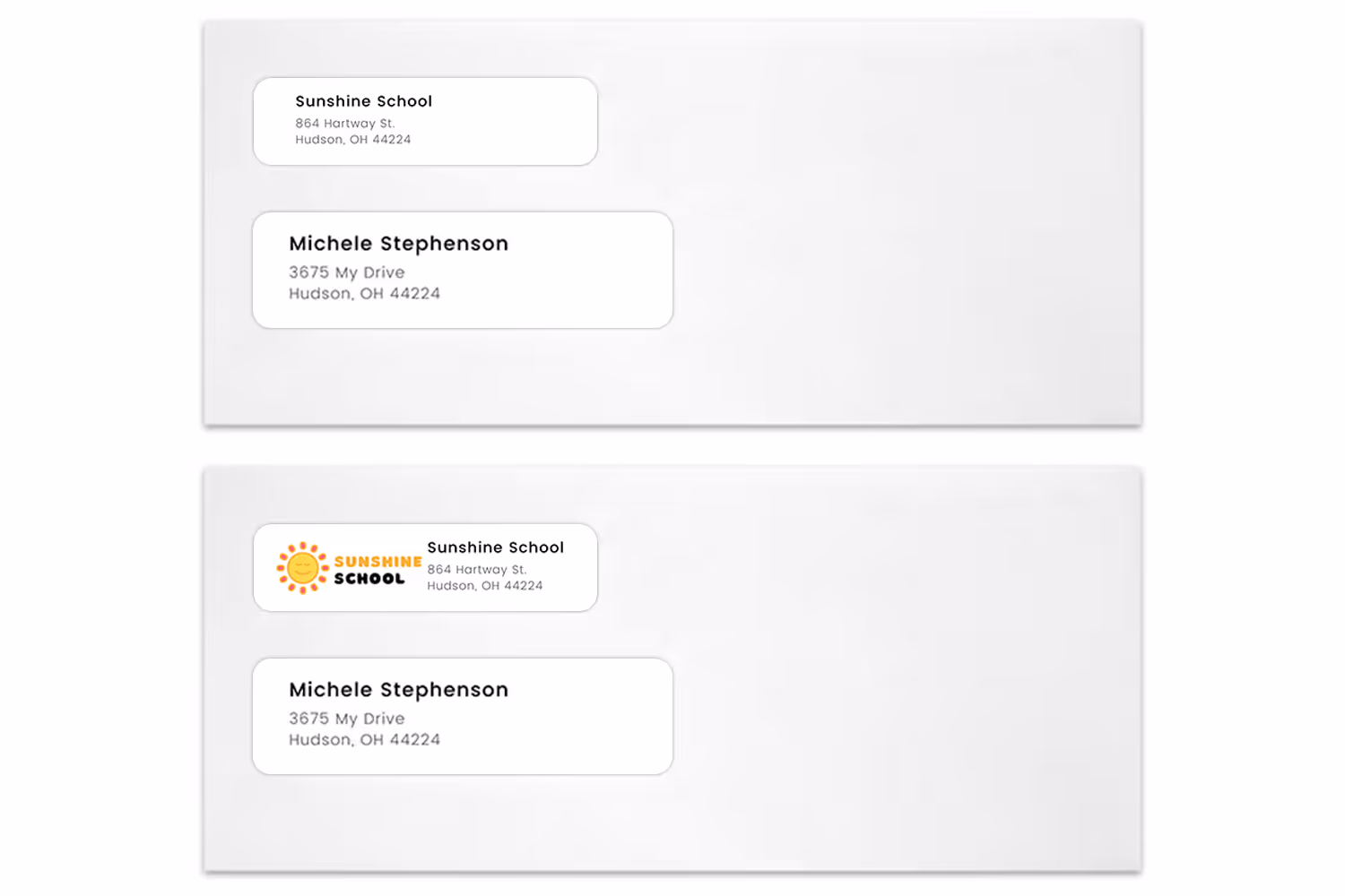 Both images include the proper address information contained within a #10 envelope’s windows.