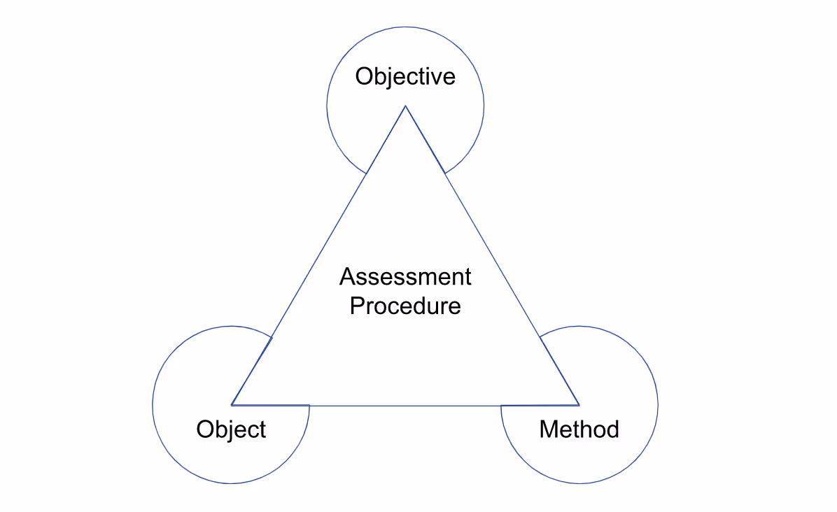 An assessment procedure consists of an assessment objective and a set of potential assessment methods and assessment objects.