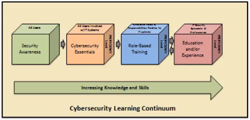 All users should be security aware but beyond the cybersecurity essentials, training should become role-based. Let’s summarize the training requirements in terms of where they fall along this spectrum.