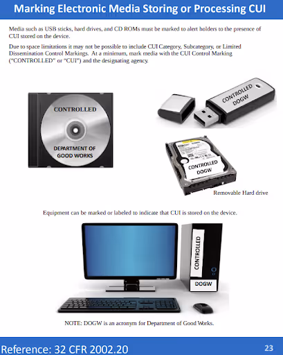 MP.L2-3.8.4 - You should train employees handling CUI on how to mark media in accordance with the CUI Marking handbook and CUI Notice 2019-01 published by the National Archives.