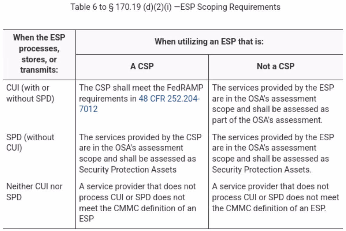 Some ESPs may not meet the definition of a CSP but handle CUI or SPD. In these cases, only the services provided by the ESP are within scope.