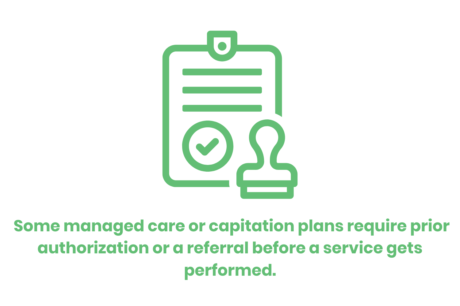 There are some managed care or capitation plans that require prior authorization or a referral before a service is performed. If the service gets completed without following the requirements, the claim will get denied, not because the service was medically unnecessary, but because it wasn't pre-approved.
