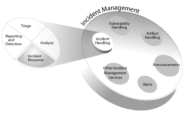 Defining the organization’s philosophy to incident management helps define the services performed. Incident management is a broader term that describes activities outside of incident handling. Incident response is the last step in the incident handling process.