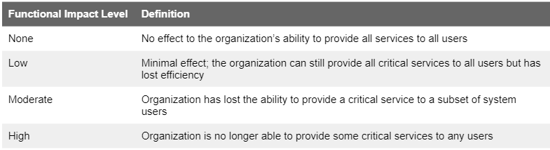 Functional Impact of the Incident - categorizes the negative impact to business functions.