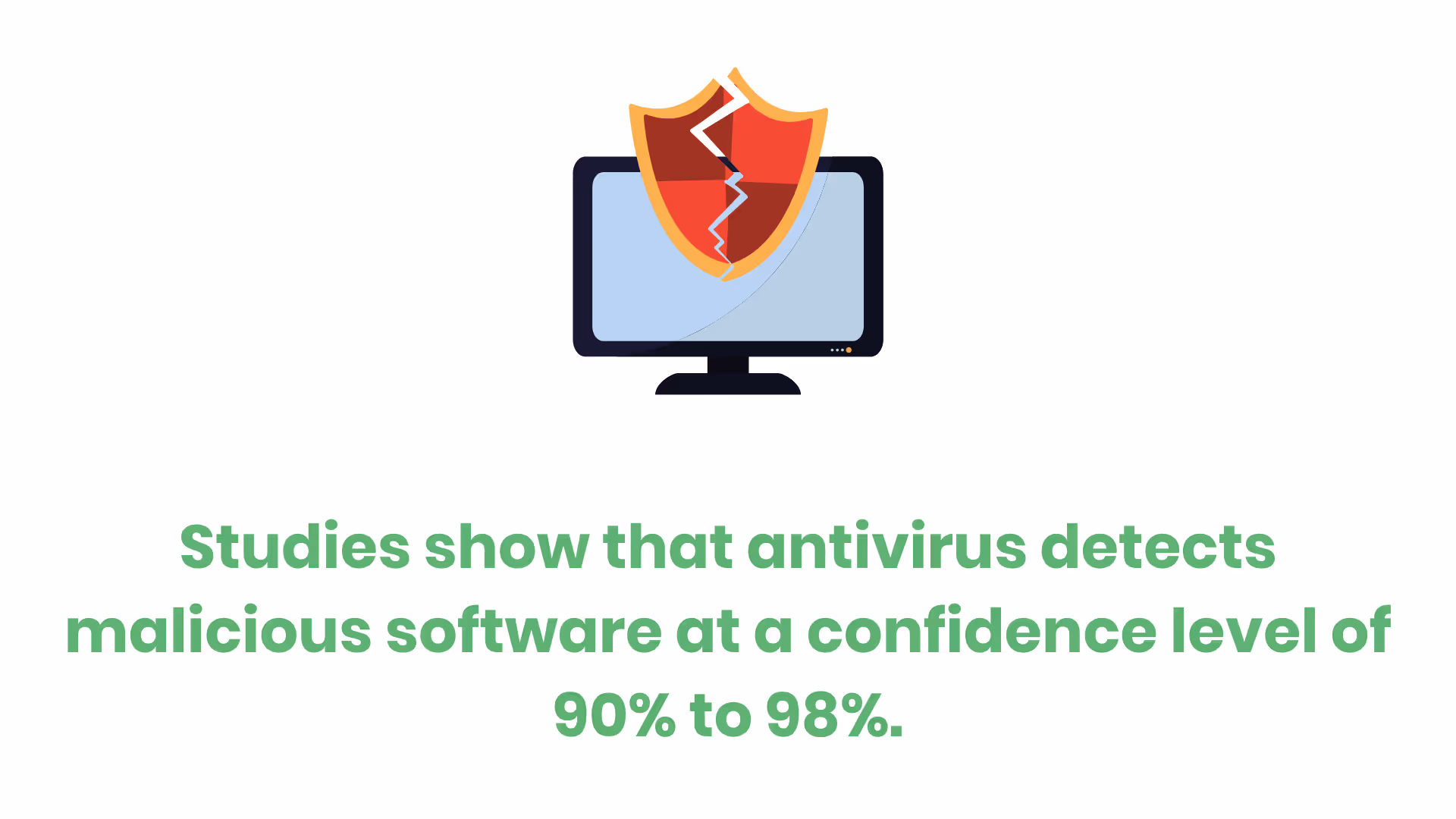 Studies show that antivirus detects malicious software at a confidence level of 90% to 98%.