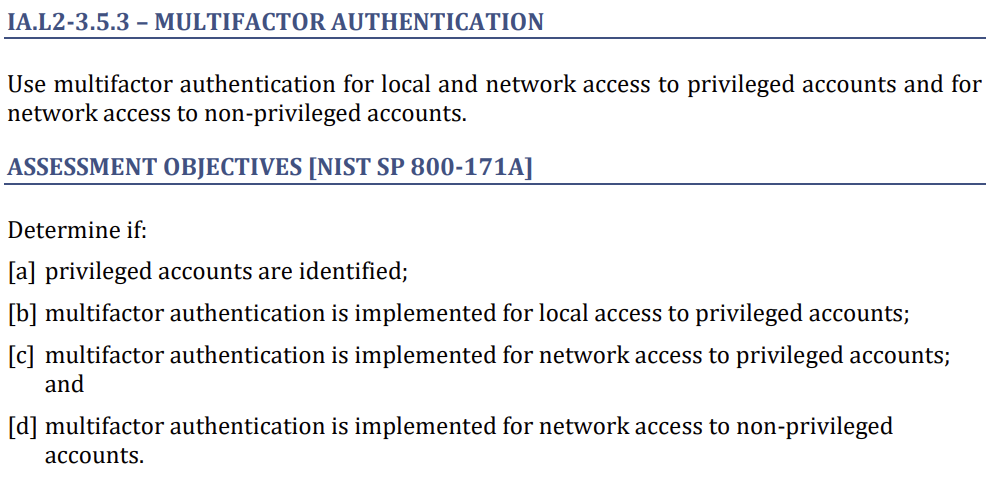 There’s less flexibility in scoring for multi-factor authentication (MFA). There’s also a misperception that this practice only applies when connecting to an outside system. This practice, according to Nick, applies to any network access. Meaning any connection to any system outside of the box you’re working in requires MFA.
