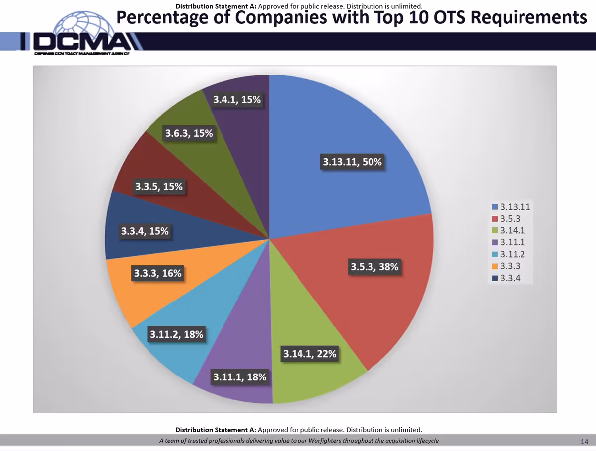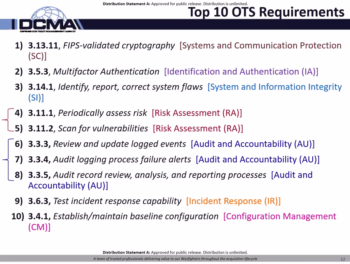 When it comes to practices assessed as other than satisfied (OTS), the DIBCAC has found 10 common practices that organizations struggle with. Nick emphasized that number one is FIPS-validated cryptography and number two is multi-factor authentication.