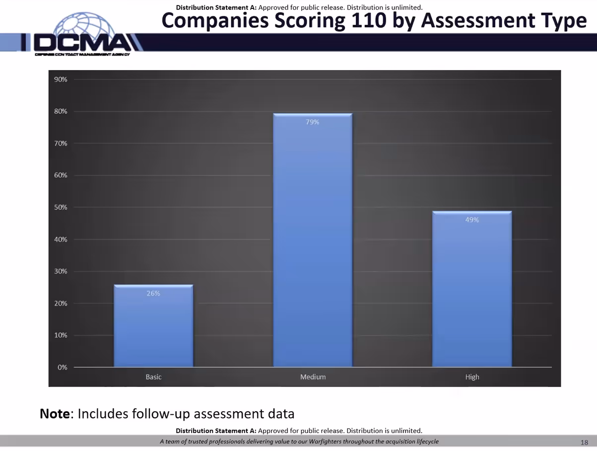 Nick provided a breakdown of the percentage of perfect scores by assessment type. As a reminder, the three types of DIBCAC assessments include: