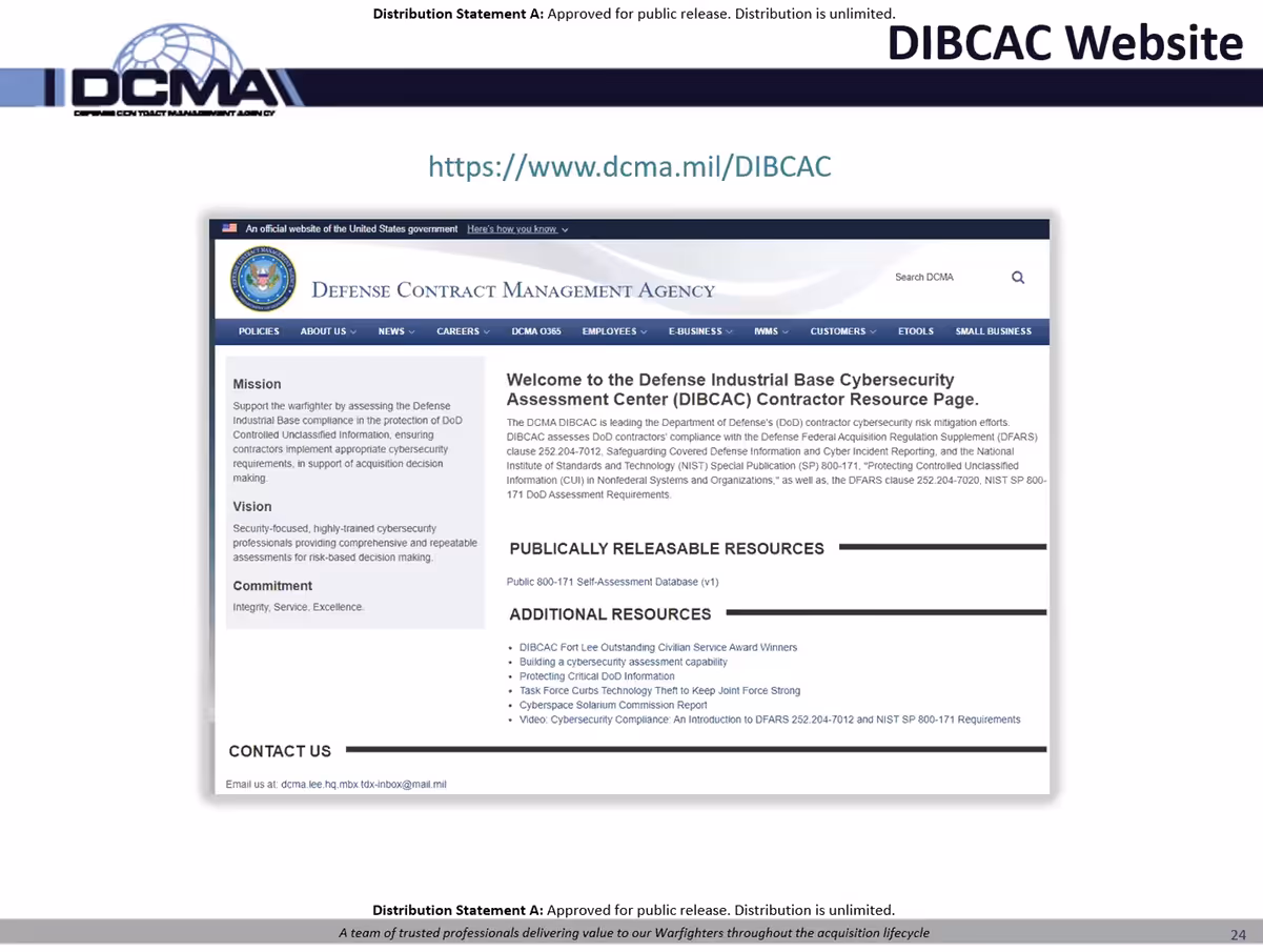 On the subject of resources, Nick introduced an updated landing page for the DIBCAC within the Defense Contractor Management Agency (DCMA) website. On the main page is their Public 800-171 Self-Assessment Database (v1) which is the same as what their assessors use.