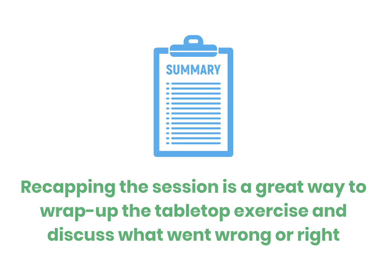 But hold on, we still aren’t done. Even after recapping the simulation, there’s more work to do to ensure you have the perfect data breach tabletop exercise.