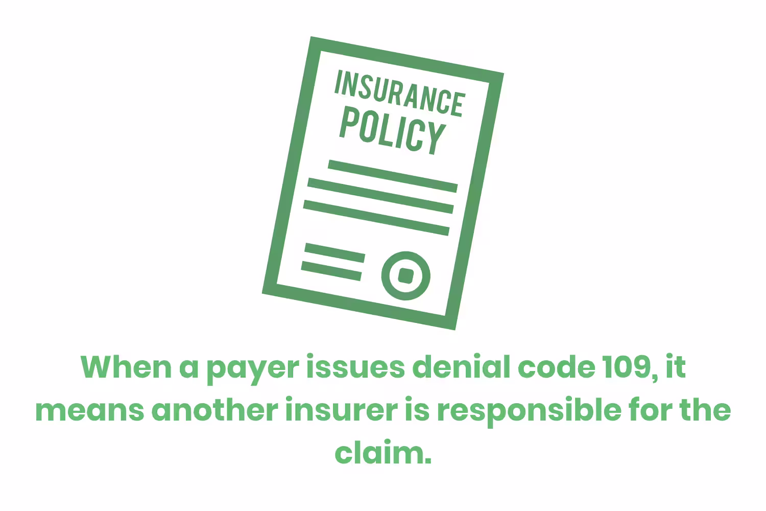 When a payer issues denial code 109, it means another insurer is responsible for the claim.
