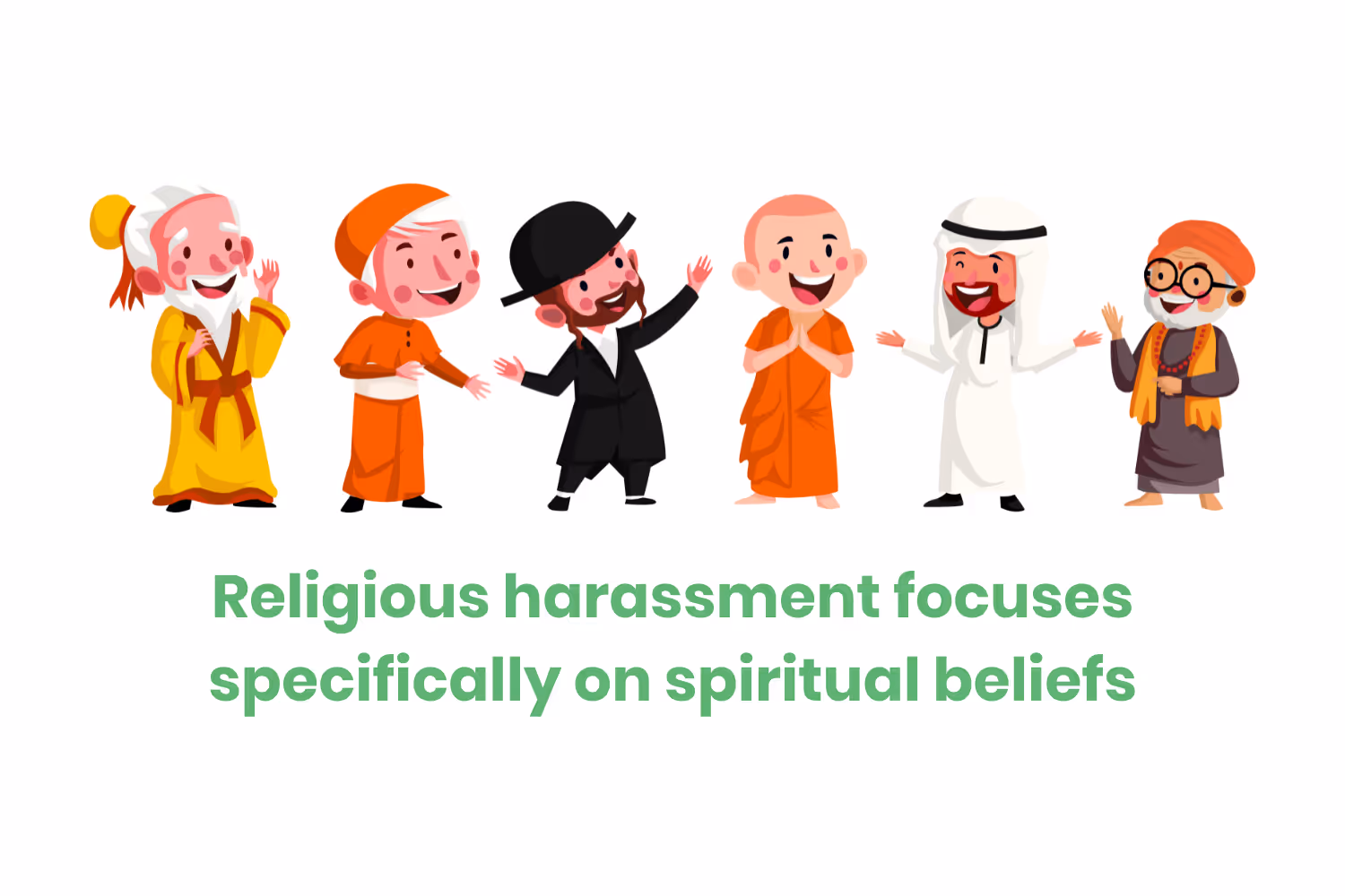 Religious harassment is different from racial harassment because it focuses specifically on religious beliefs. An individual who practices a different philosophy compared to the majority of people around them in the workplace may find themselves receiving this type of harassment.