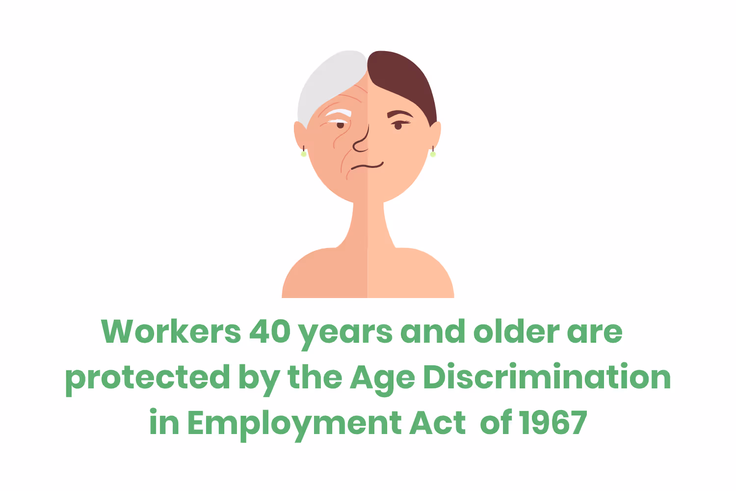 More specifically, workers 40 years and older are specifically protected by the Age Discrimination in Employment Act of 1967. This law was the federal government’s way of promoting the employment of older people and reducing age-based harassment.