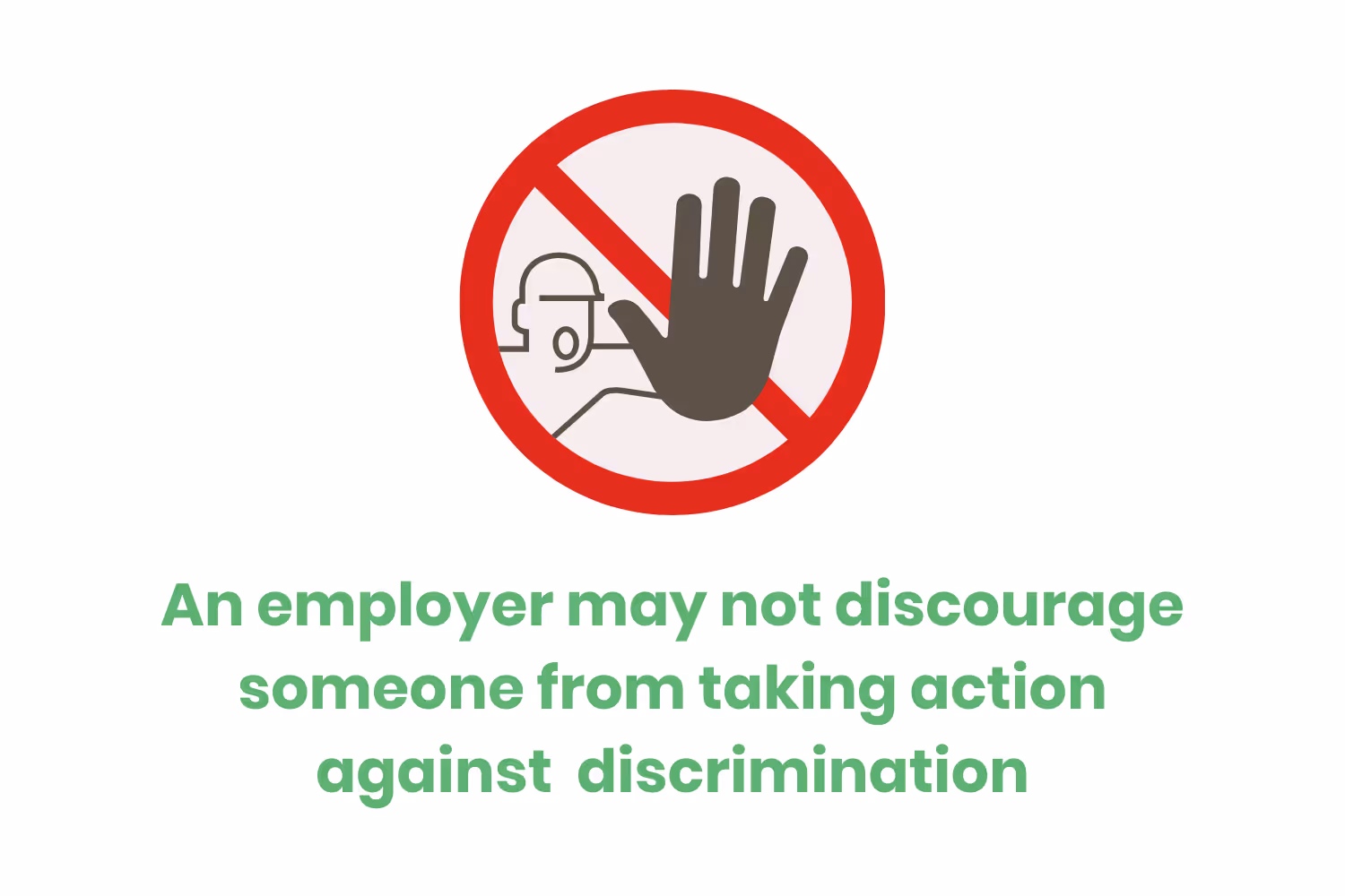 However, an employer may not take disciplinary action in response to one of the actions listed above. Similarly, an employer may not discourage someone from taking action against complaining about future discrimination.