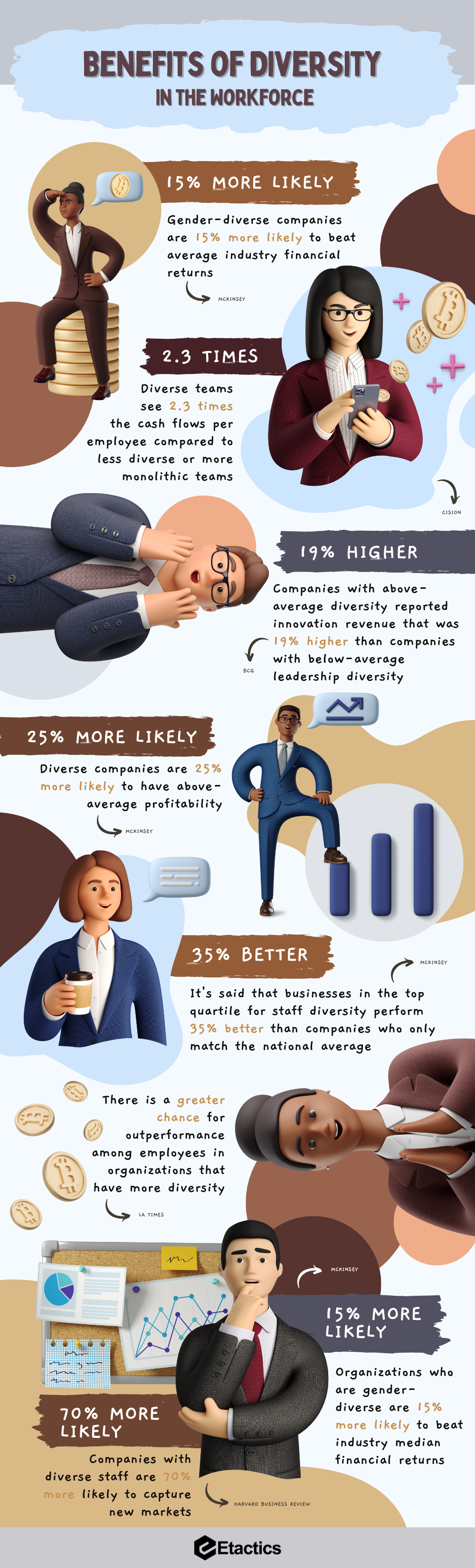 The statistics below indicate that yes, there are. Having a wide variety of backgrounds on your team can increase productivity, profits, and revenues.