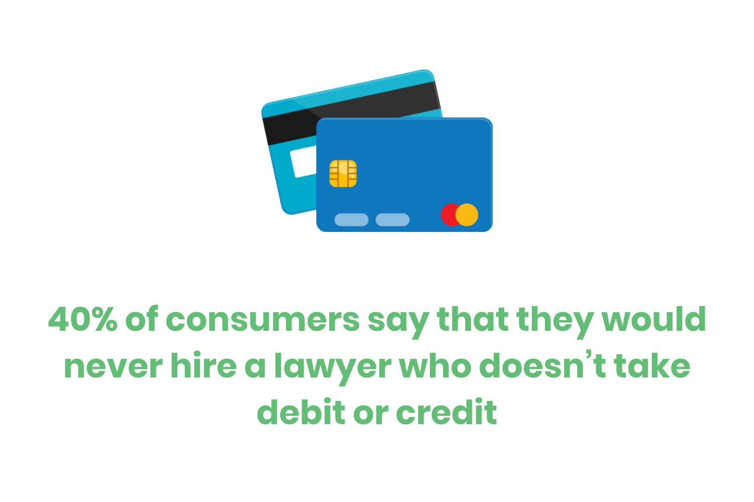 You see, 40% of consumers say that they would never hire a lawyer who doesn’t take debit or credit.