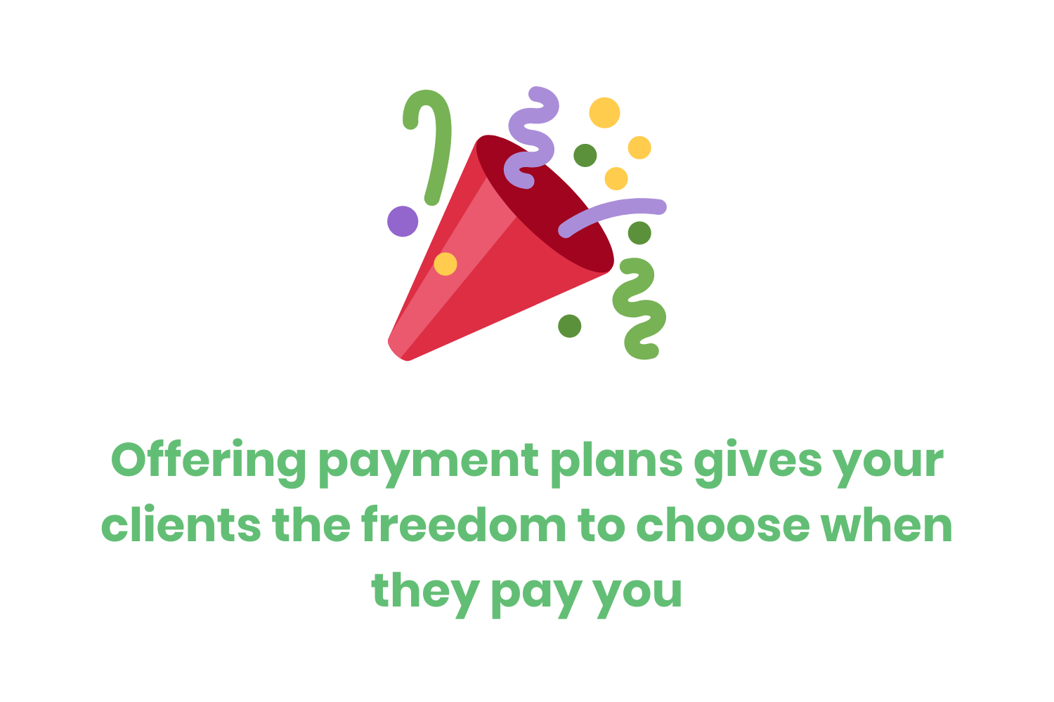 Offering payment plans gives your clients the freedom to choose when they pay you. Thus, they’re naturally going to choose dates that relate to when they get paid by their employer.