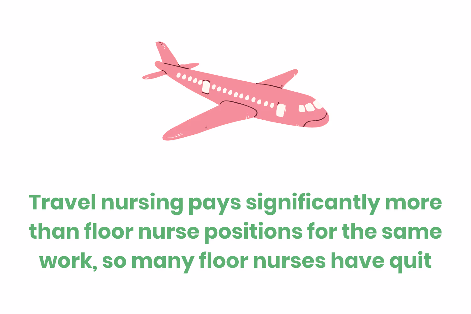 Floor nurses become frustrated that hospitals pay travelers so much more than current employees for doing the same job. This causes these workers to eventually leave.