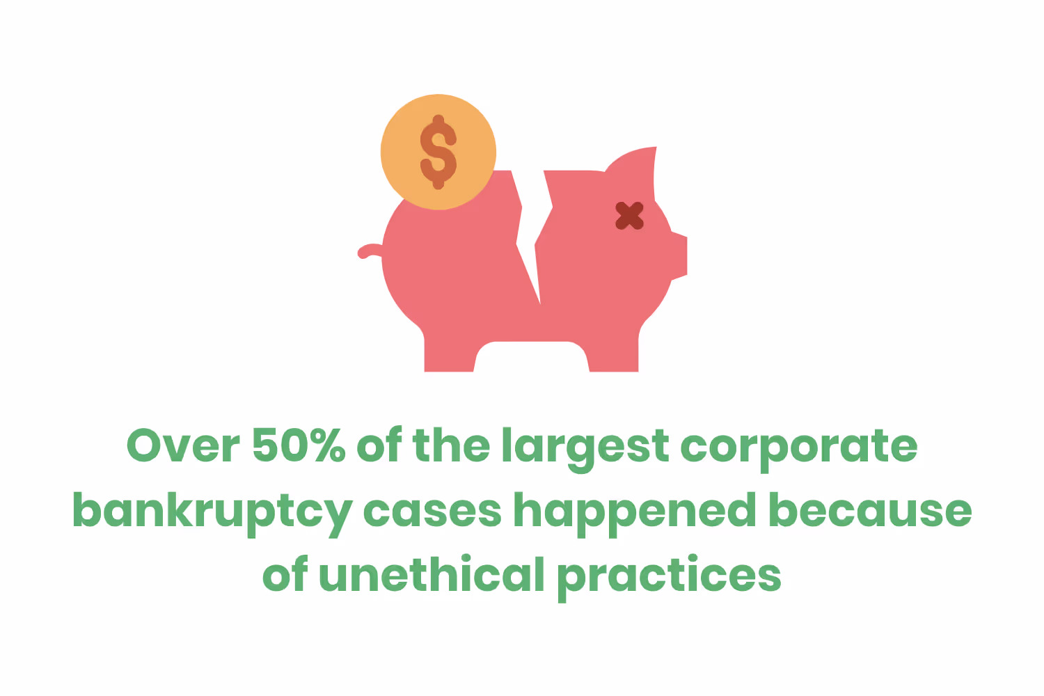 A lack of ethics affects profits when a business faces multi-million dollar fines. To prove this point, over 50% of the largest corporate bankruptcy cases happened because of unethical practices.