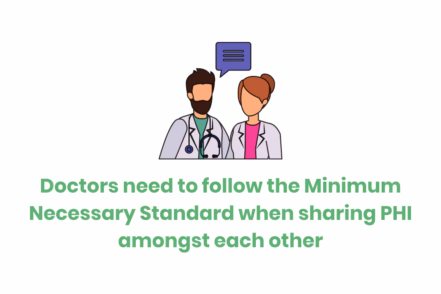 When doctors need to share PHI amongst each other, they need to follow the Minimum Necessary Standard. This means that a healthcare professional may only share PHI to the least amount possible.