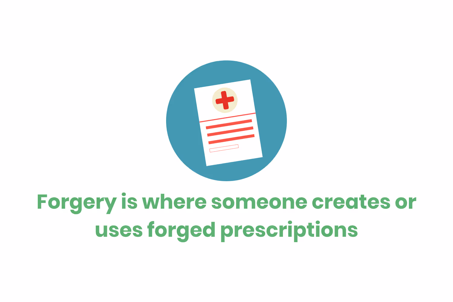Forgery is one of the most common types of prescription fraud. Forgery is where someone (often a patient) creates or uses forged prescriptions. (FBI)