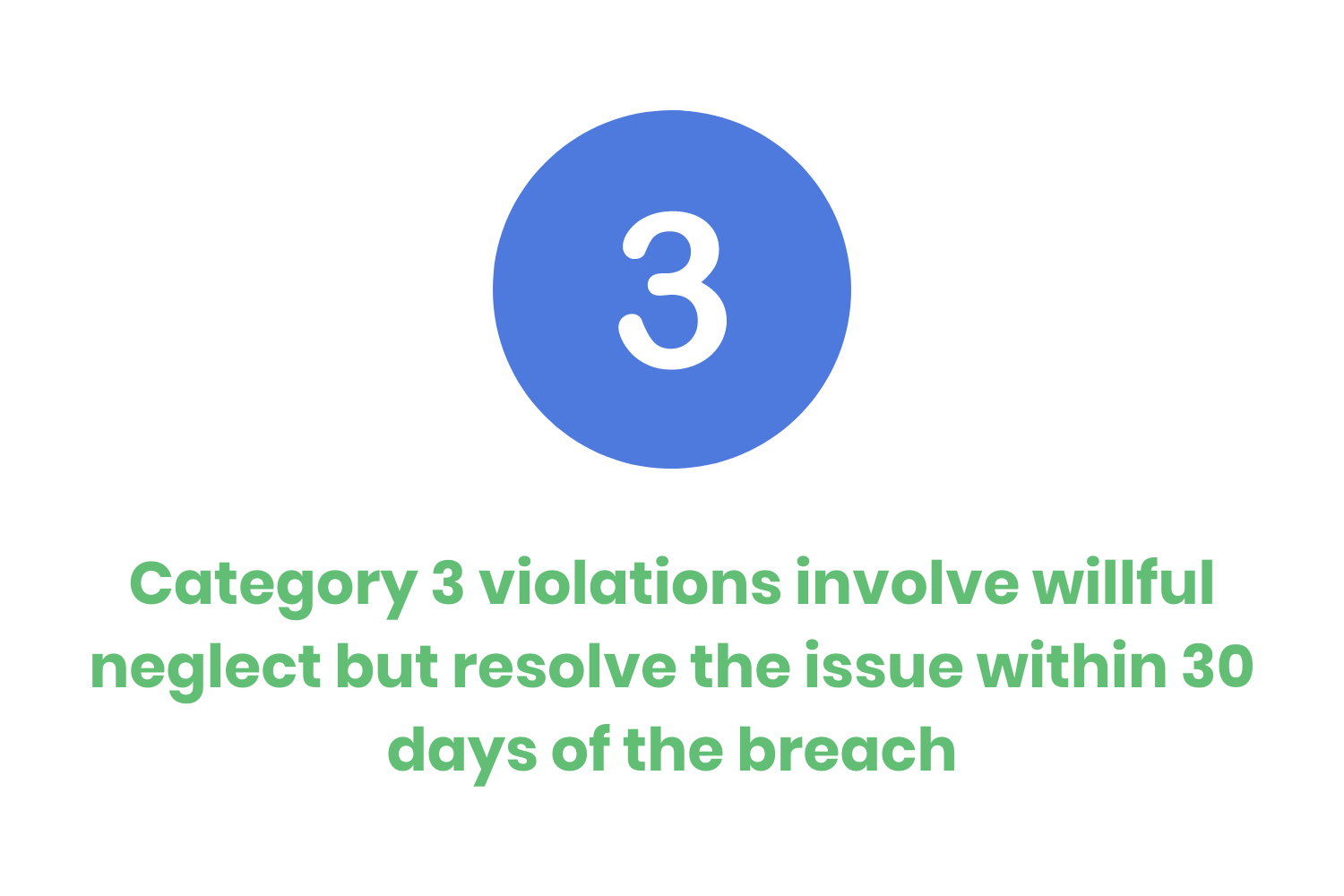 This category involves willfully neglecting HIPAA rules and regulations which results in a violation. Another distinct factor of Category 3 violations is that the covered entity takes action within 30 days to address or resolve the situation.