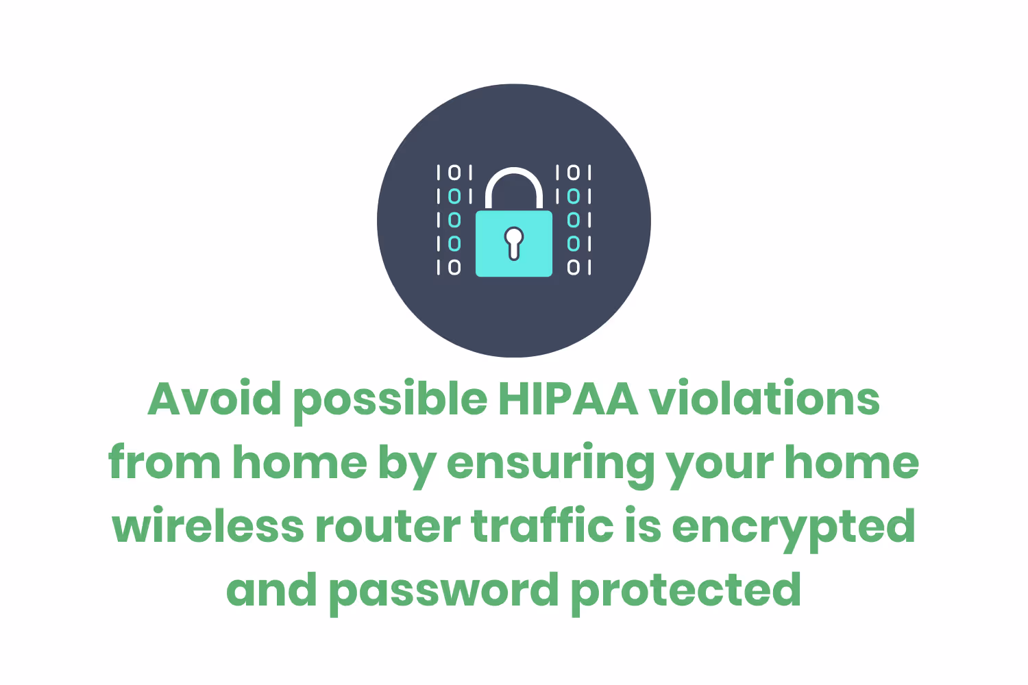 Ensure your home wireless router traffic is password protected. By doing this along with making sure to log in securely to your company’s network, it’s less likely that an employee will face a HIPAA violation.