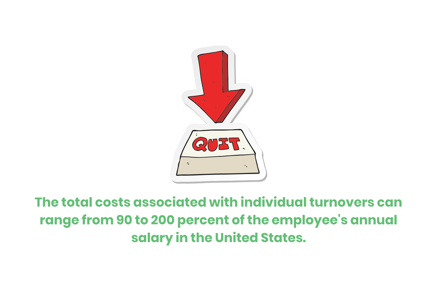 SHRM reports that the total costs associated with individual turnovers can range from 90 to 200 percent of the employee's annual salary in the United States.