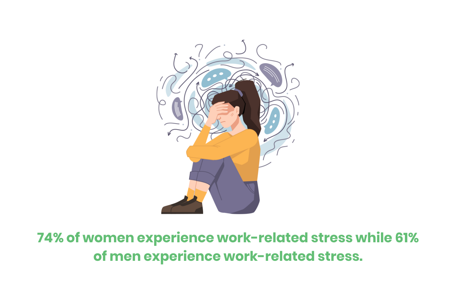 74% of women experience work-related stress while 61% of men experience work-related stress.