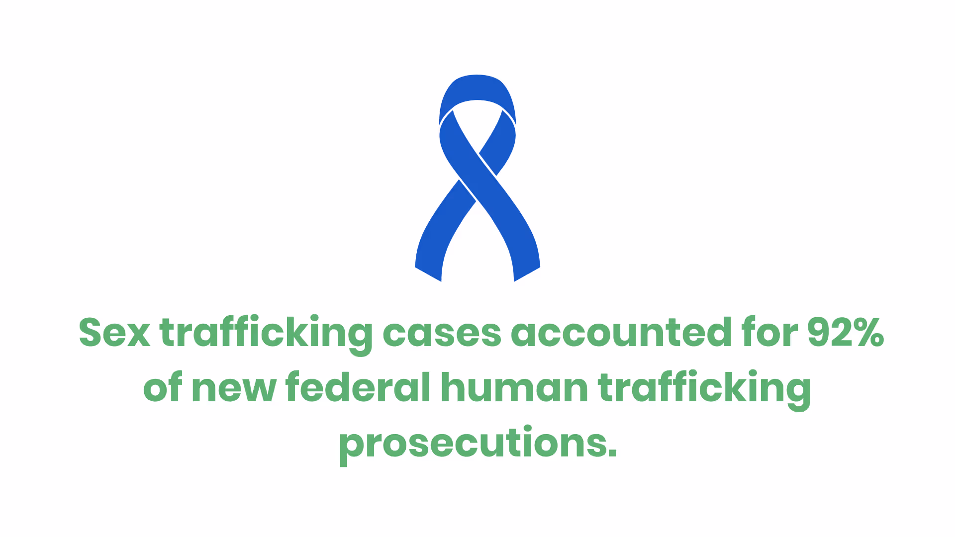 In 2021, sex trafficking cases accounted for 92% of new federal human trafficking prosecutions. There were 129 new criminal sex trafficking cases, 29 of which had adult victims and 73 with only child victims. There were 570 active criminal sex trafficking cases ongoing in the court system as well.