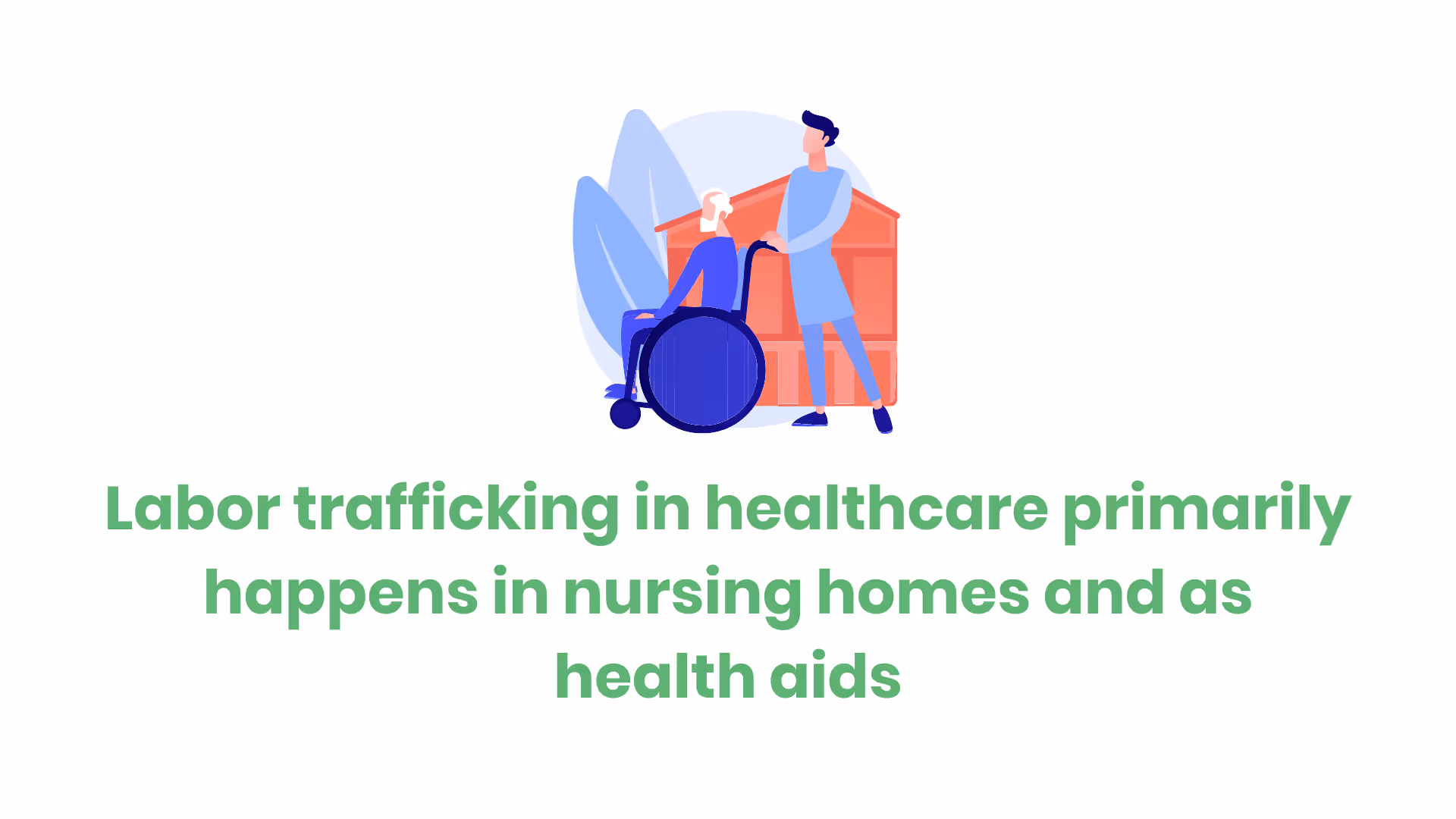 Labor trafficking in healthcare primarily happens in nursing homes and as health aids.