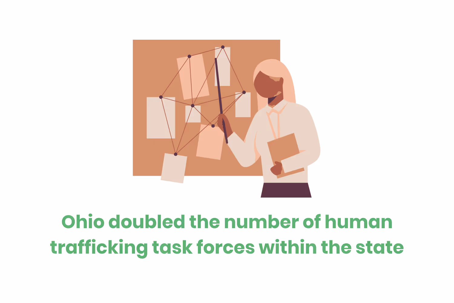 Ohio doubled the number of human trafficking task forces within the state. This means that as time goes on, more victims will find their freedom and more abusers will go to prison.