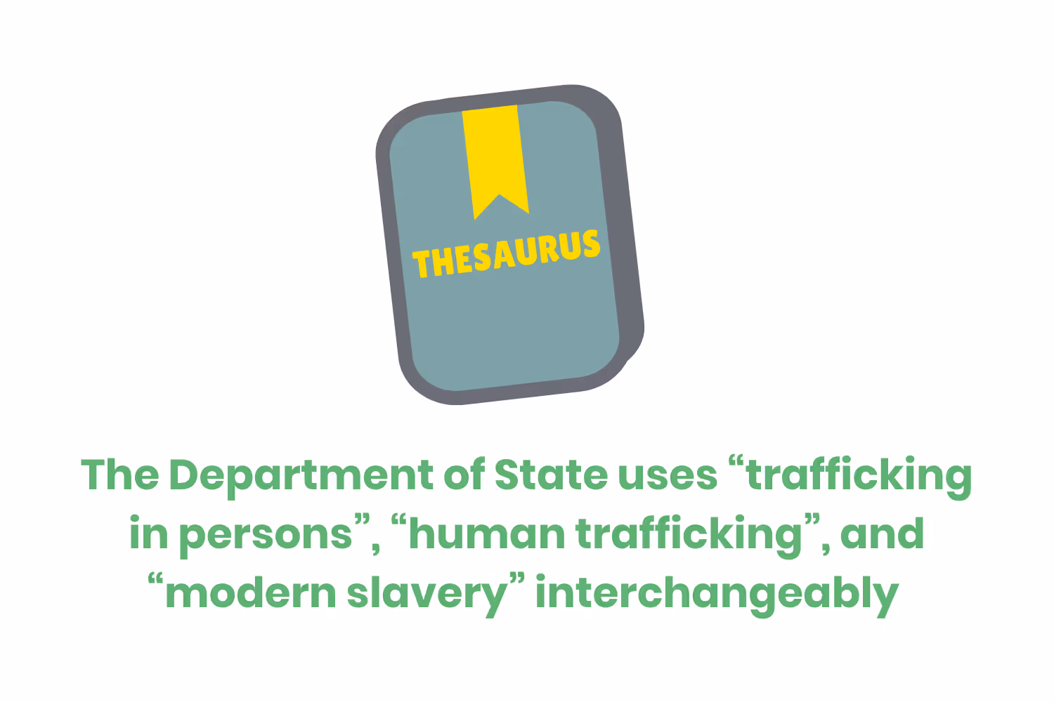 The U.S. Department of State uses the terms “trafficking in persons”, “human trafficking”, and “modern slavery” interchangeably when referring to human trafficking. According to the Department of State, these terms refer to…