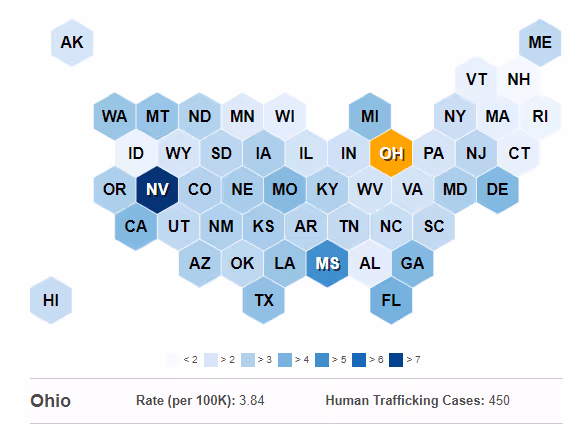 Ohio is one of the worst states for human trafficking, both for the number of victims and the state’s victim-to-population ratio.