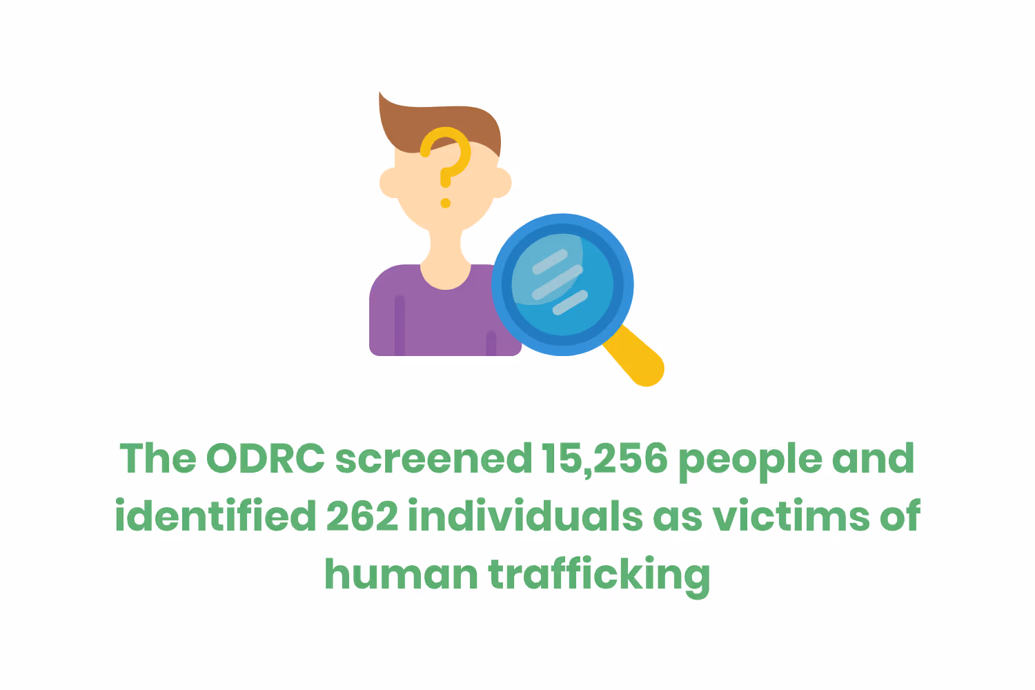 The Ohio Department of Rehabilitation and Correction (ODRC) began its screenings in 2014. They specifically screen all inmates at reception for indicators. The inmates are also screened at various touch points throughout their imprisonment. The department screened 15,256 people in 2020. From these screenings, they identified 262 individuals as victims of human trafficking.