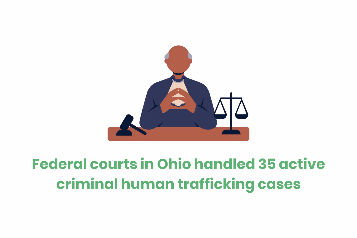 Federal courts in Ohio handled 35 active criminal human trafficking cases. 97% of the cases were sex trafficking and the other 3% dealt with forced labor.
