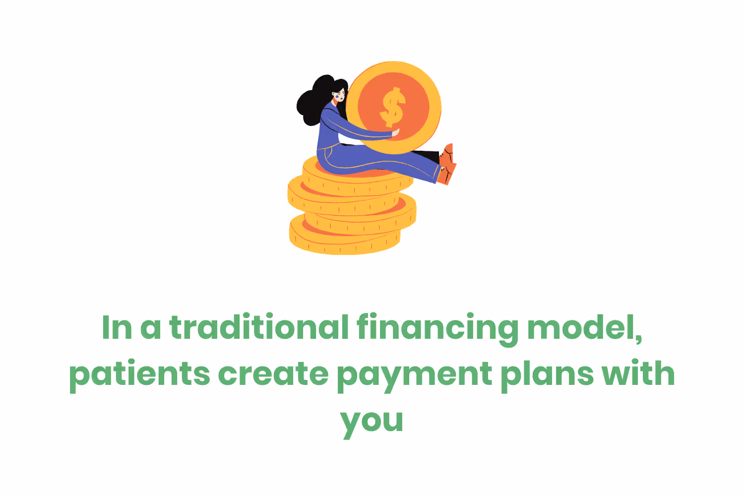 This option occurs when a patient sets up a payment plan with you, the practice. In this model, the patient doesn’t apply for financing.