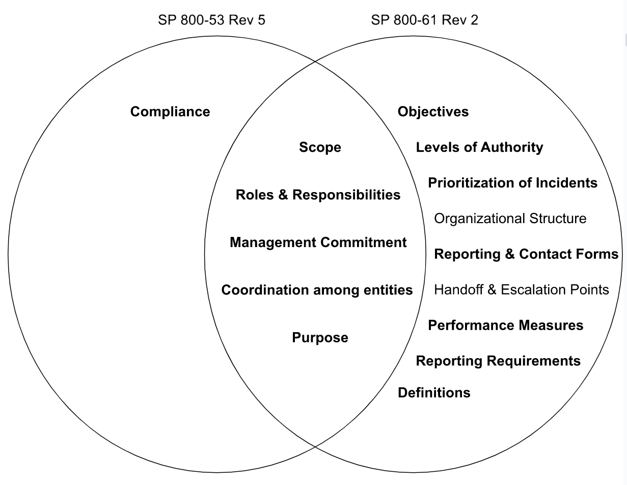 The policy elements cited in NIST SP 800-61 Rev 2 go well beyond the requirements listed in NIST SP 800-53 Rev 5. Each organization will tailor their own elements into their policy.