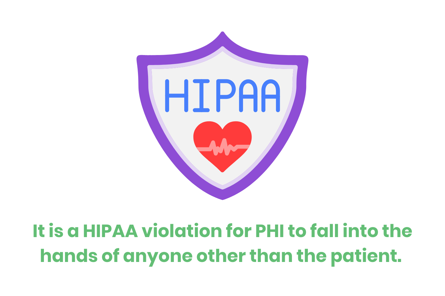 It is a Health Insurance Portability and Accountability Act (HIPAA) violation for protected health information (PHI) to fall into the hands of anyone other than the patient.
